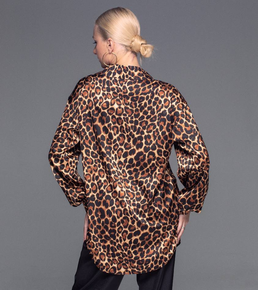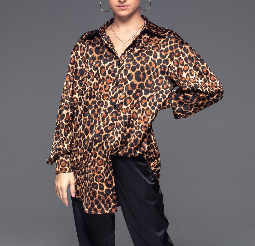 Leopard Satin Dress Shirt